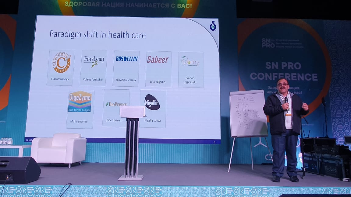 Sabinsa presented the topic of Nutraceutical Approach for Health and wellness. Dr. Sarang Bani presented the topics to audience on Sabinsa core products for Russia - Curcumin C3 Complex®, ForsLean®, Boswellin®, Sabeet®, Saberry®, DigeZyme®, BioPerine® and Nigellin®. Anchoring in Russian translation was Mr. Ivan Perepelkin, Director, Invita Trade Ltd, Moscow. The Audience appreciated the presentation and the quality of Sabinsa Products was acknowledged.