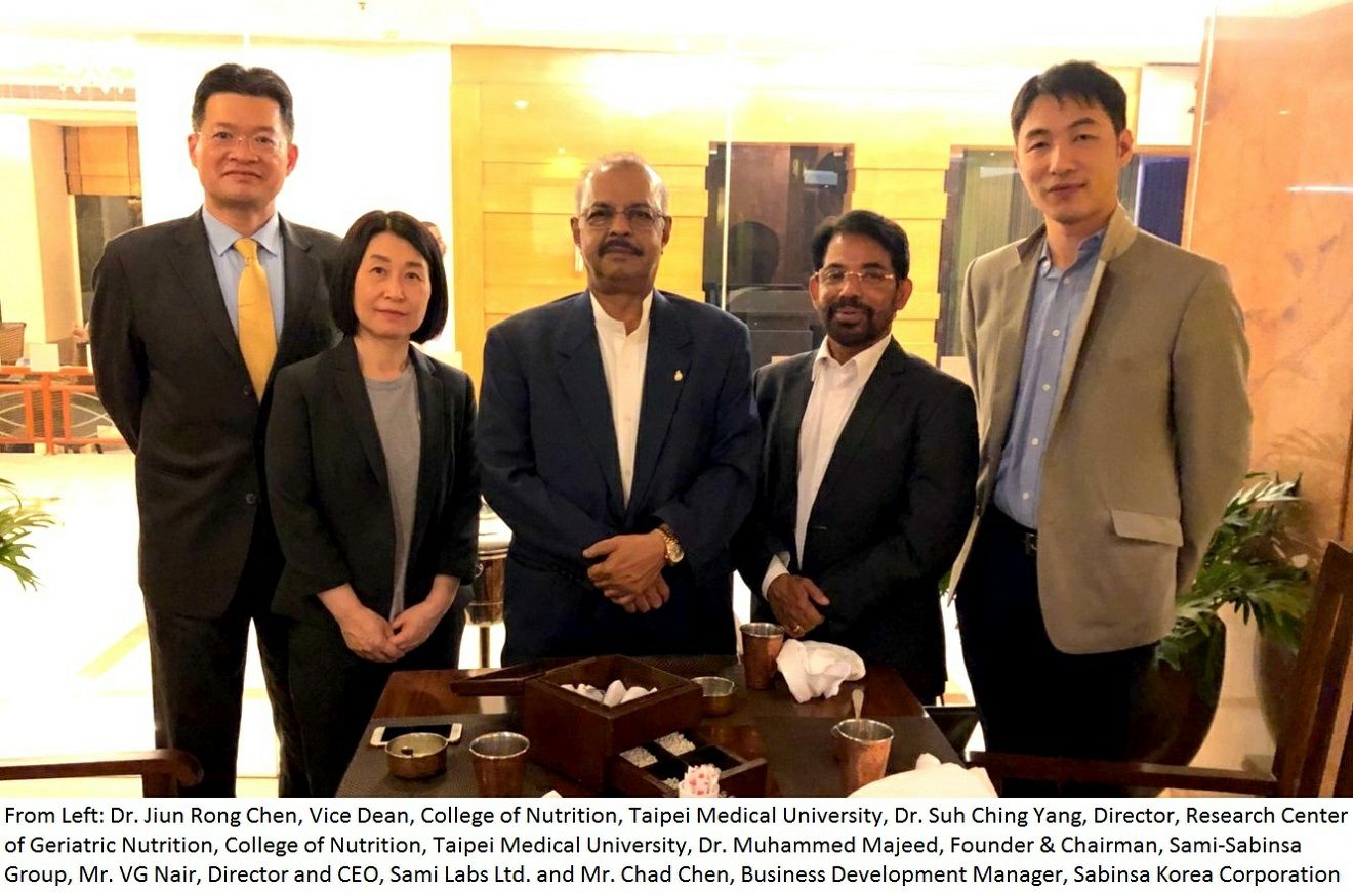 Dr. Jiun Rong Chen, Vice Dean, College of Nutrition, Taipei Medical University, Dr. Suh Ching Yang, Director, Research Center of Geriatric Nutrition, College of Nutrition, Taipei Medical University visited Sami Labs Ltd to explore the scientific collaboration of the study related to biological Research between Taipei Medical University and Sami-Sabinsa.